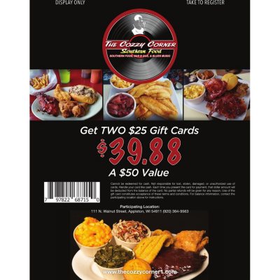 Cozzy Corner 2 X 25 Giftcards Sam S Club